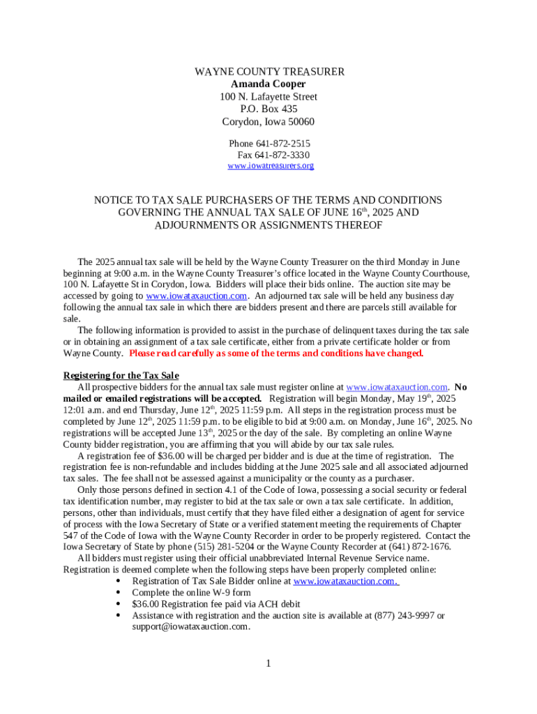 Notice to Tax Sale Purchasers of the Terms and Conditions Governing the Annual Tax Sale word template: frequently asked questions