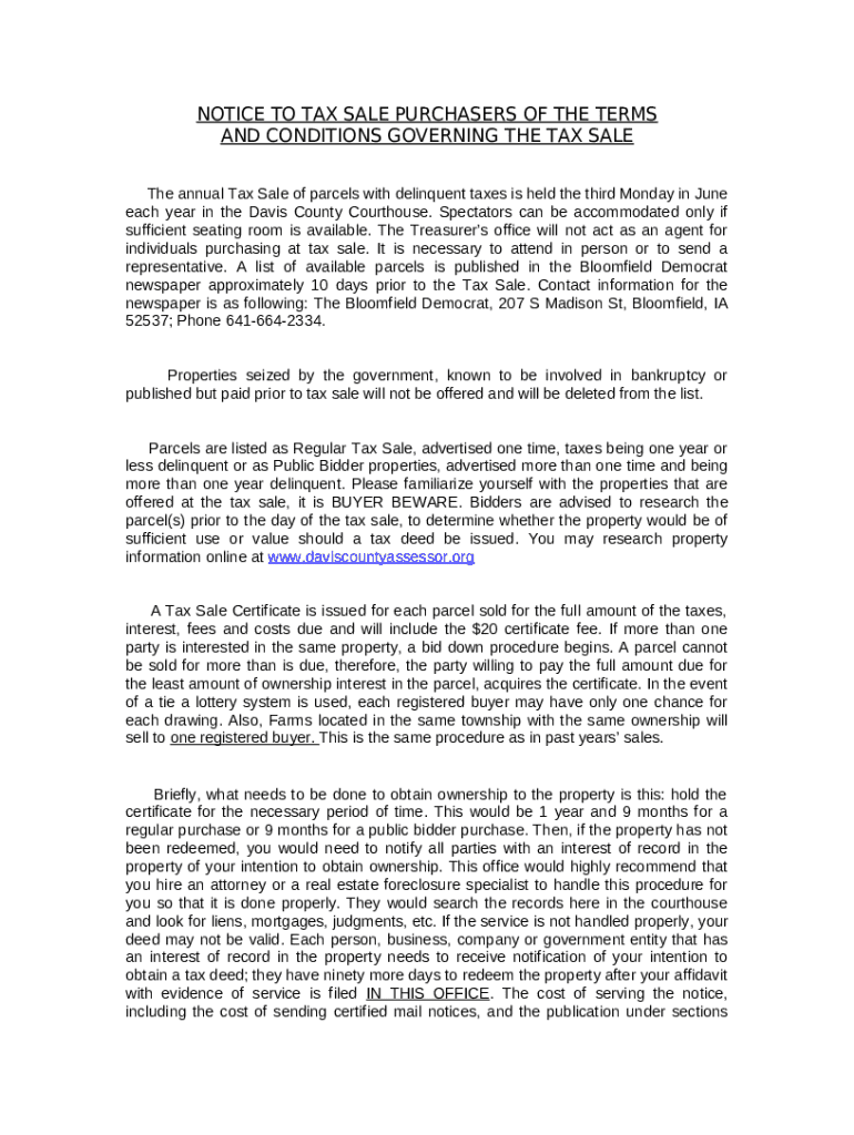 Notice to Tax Sale Purchasers of the Terms and Conditions Governing the Tax Sale template instructions