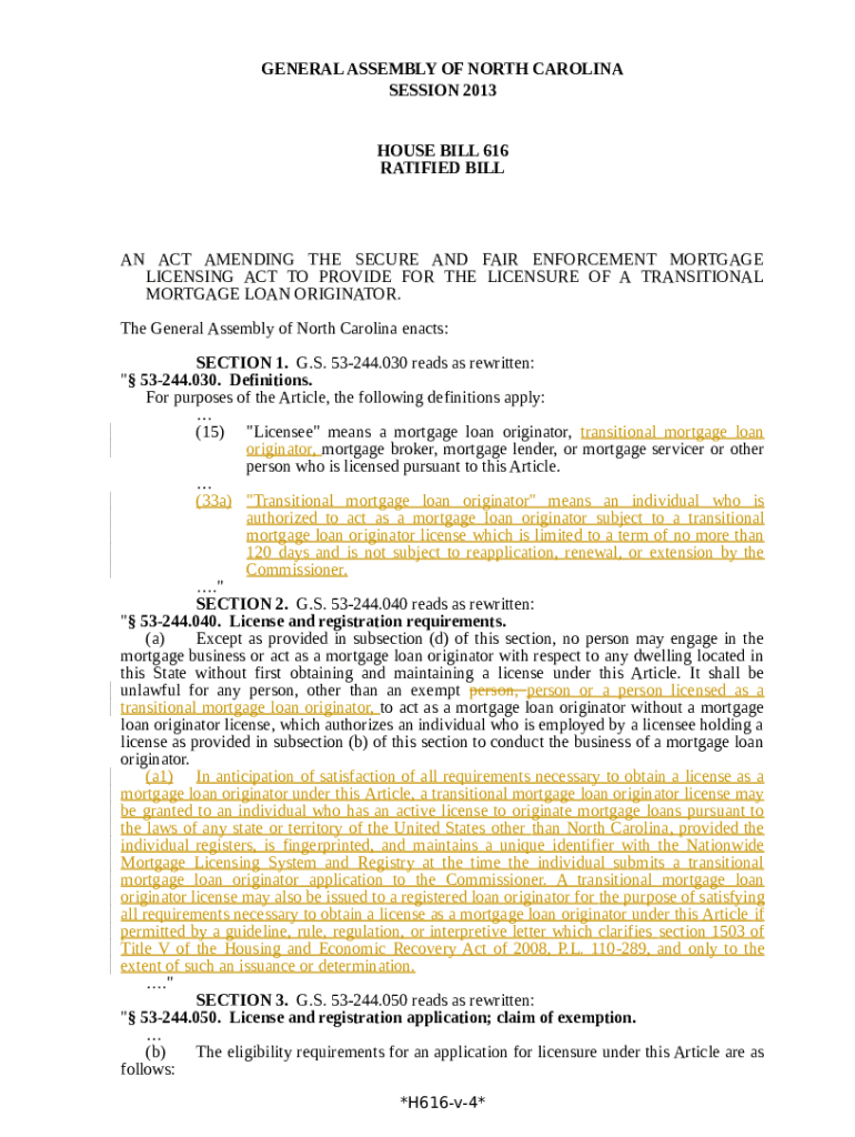 How to fill out North Carolina Transitional Mortgage Loan Originator Act