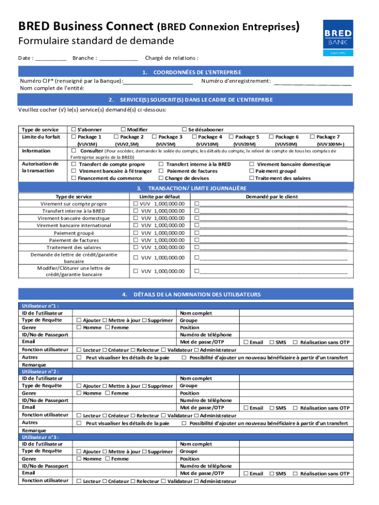 Obtenir le gratuit Bred Business Connect Standard Request Form