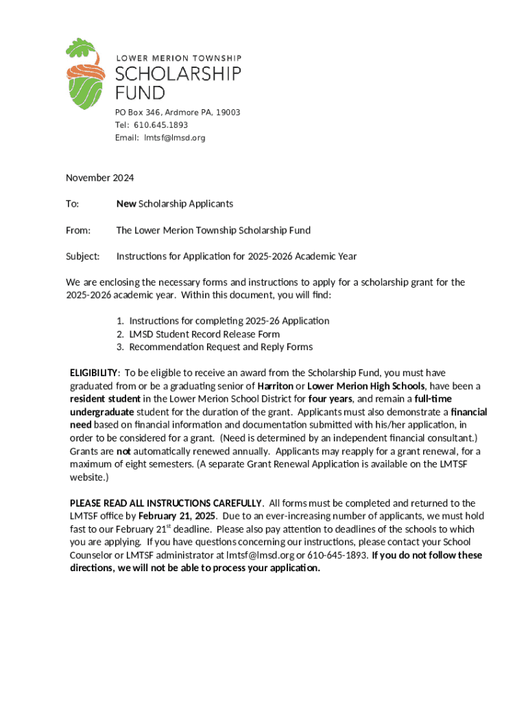 Frequently asked questions about Lower Merion Township Scholarship Fund Application Instructions template