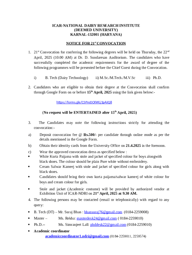 Notice for 21st Convocation - ndri res: frequently asked questions