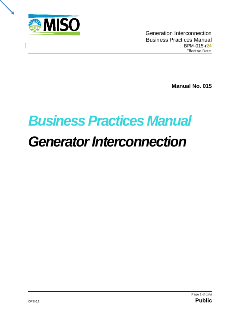 Template Business Practices Manual Generator Interconnection instructions