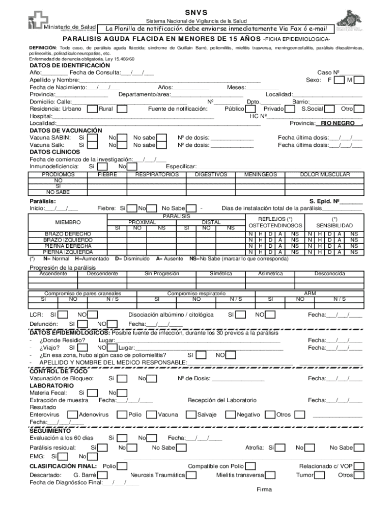 Obtener el gratis Ficha Epidemiológica De Parálisis Aguda Flácida