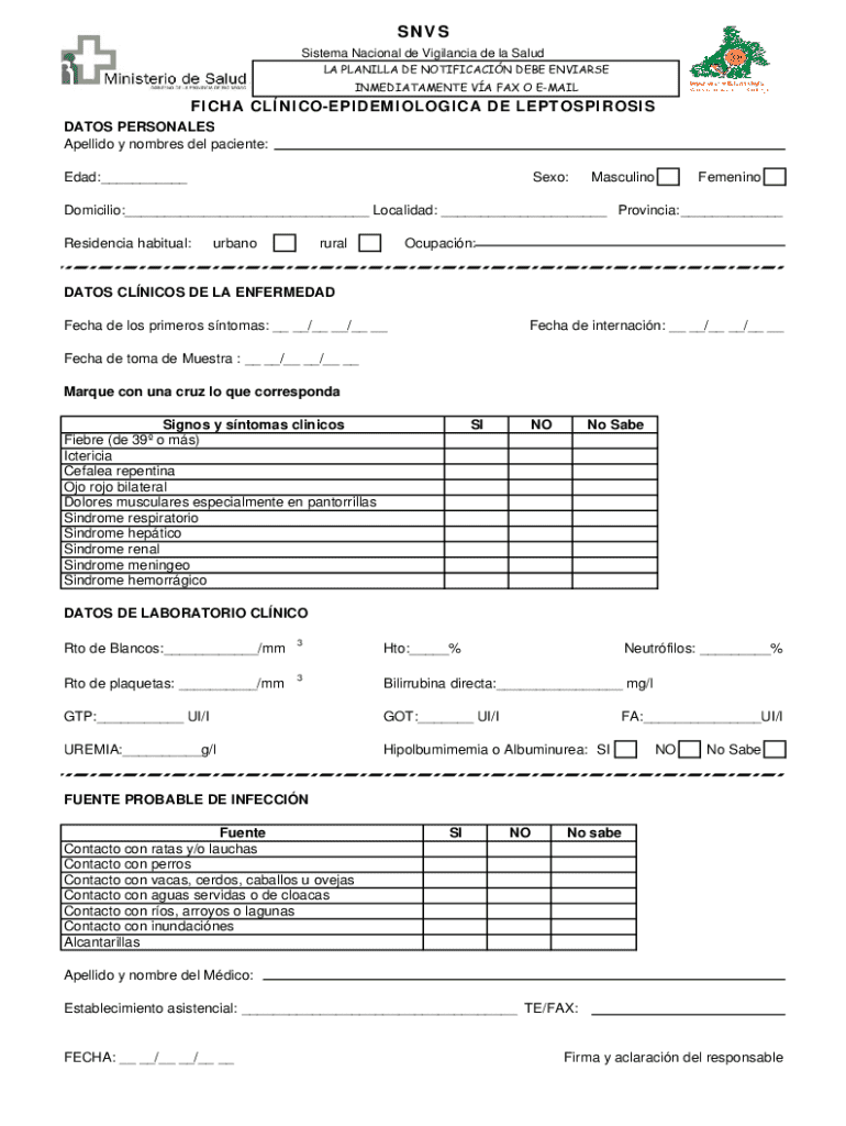 Obtener el gratis Ficha ClÍnico-epidemiologica De Leptospirosis