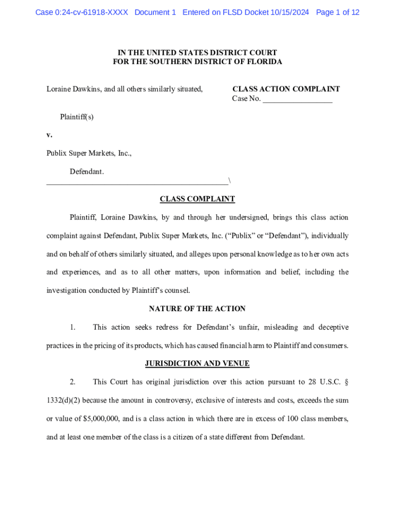 Navigating the class action complaint form involves understanding its structure. Typically, the form includes sections for personal information, a description of the class, a detailed account of the basis for the claim, and the relief sought. Each section holds significance in presenting the case coherently.