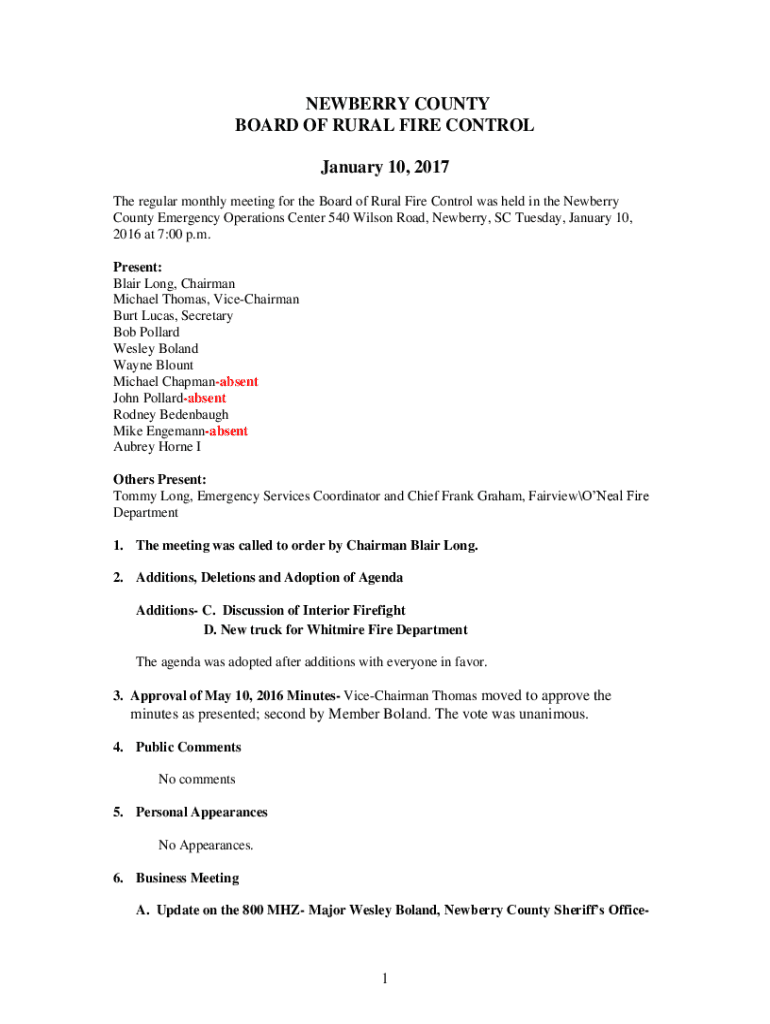 Get the free Newberry County Board of Rural Fire Control Meeting Minutes
