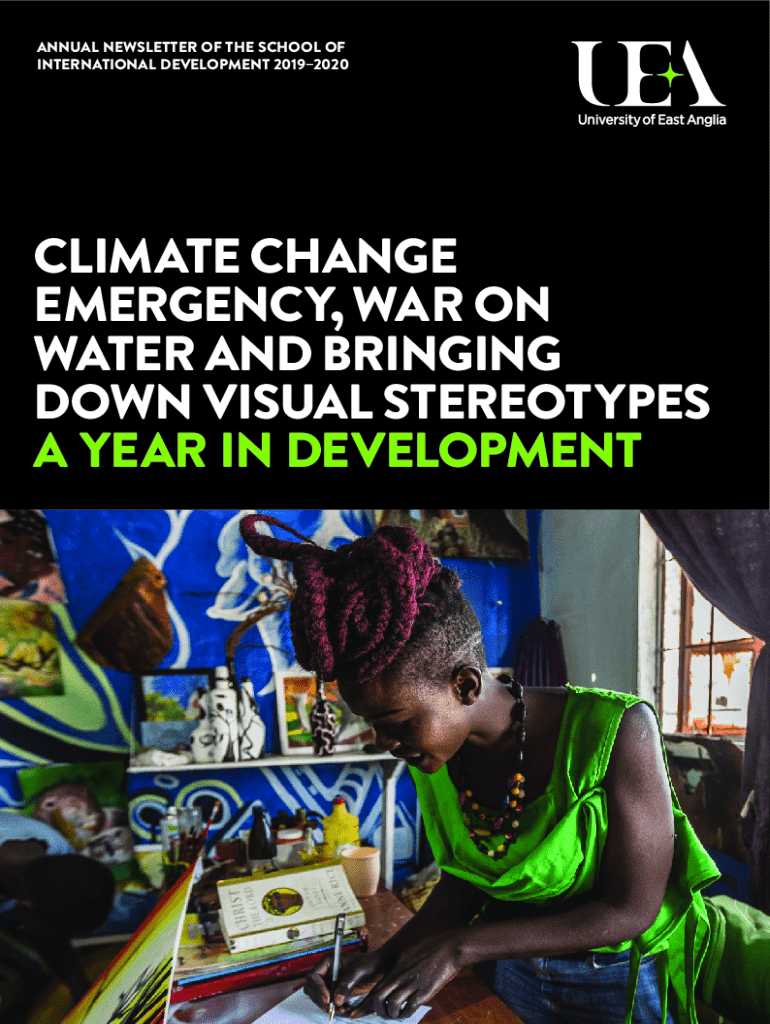 This document is the annual newsletter for the School of International Development at UEA, detailing events, news, research, and student activities from the year.