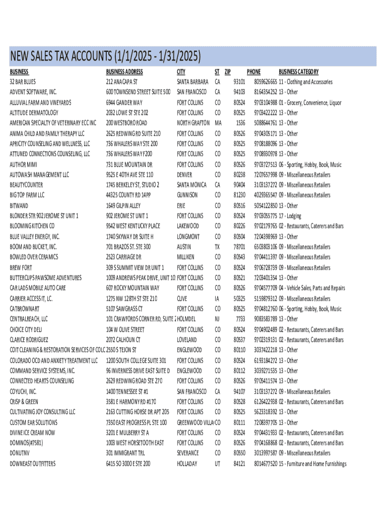Get the free New Sales Tax Accounts (1/1/2025 - 1/31/2025)