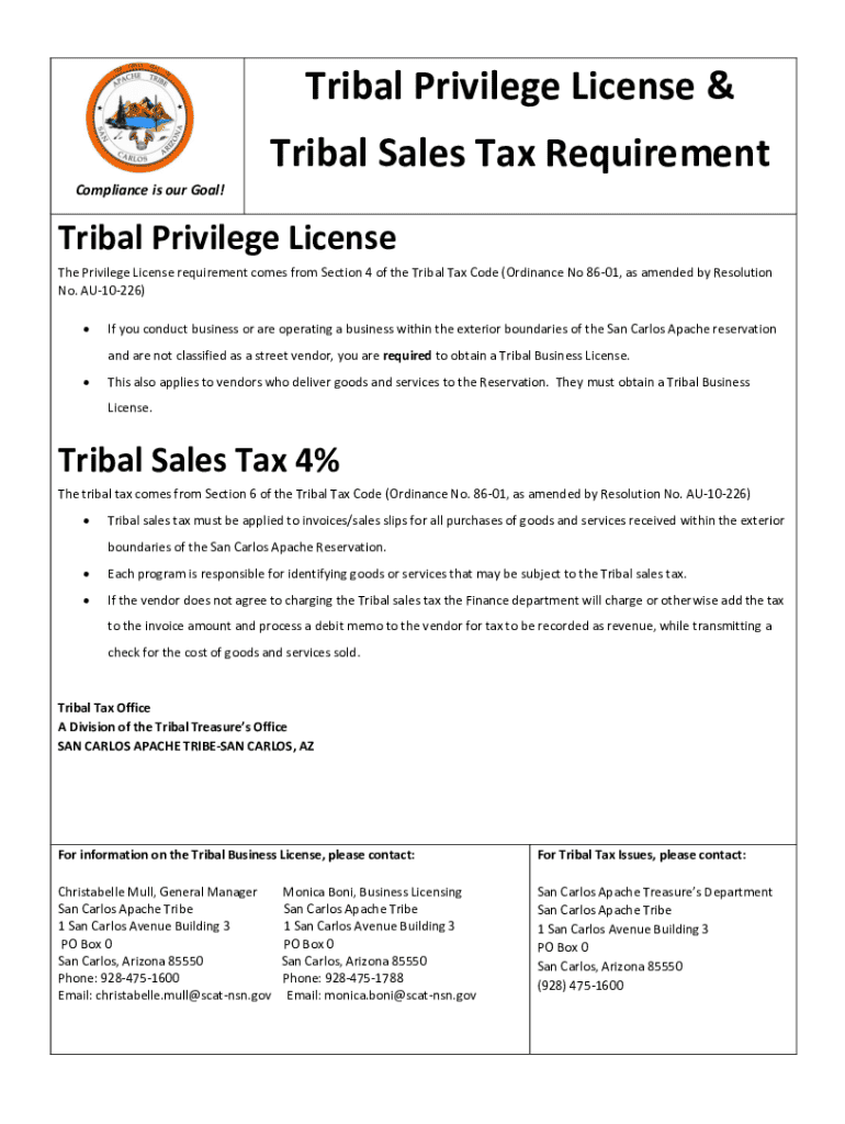 Get the free Tribal Privilege License & Tribal Sales Tax Requirement