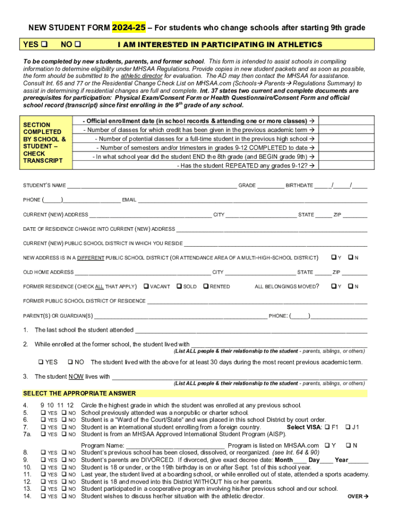 How to fill out new student form 2024-25