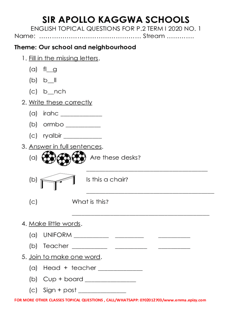 Get the free English Topical Questions for P.2 Term I 2020