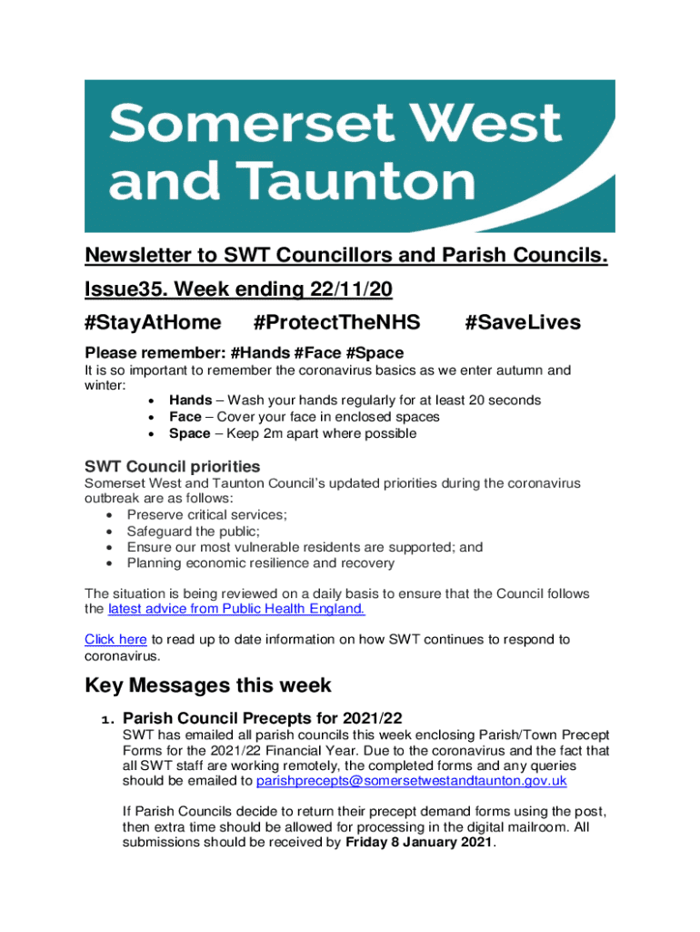 Get the free Newsletter to Swt Councillors and Parish Councils
