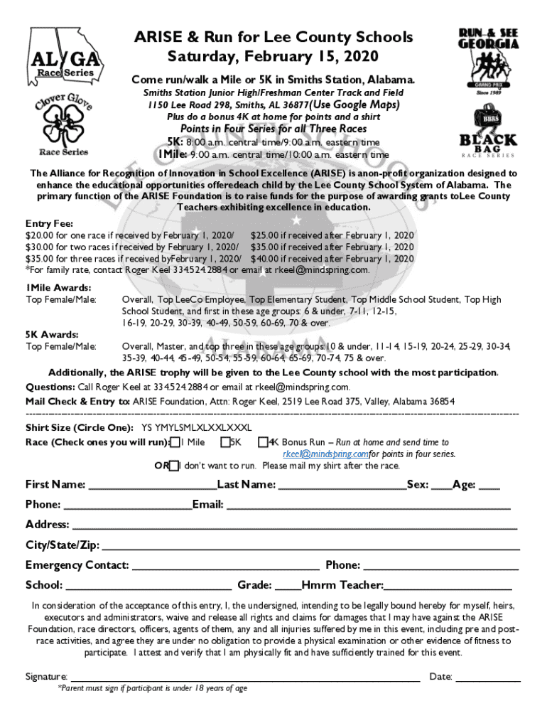 The Arise Run for Lee Form is a critical component of the annual Arise Run event, which aims to raise funds and awareness for various local charities. This form serves multiple purposes, including registration for participants, team organization, and event categorization. By completing this form accurately, participants not only secure their place in the run but also contribute to the broader mission of supporting those in need within the community.