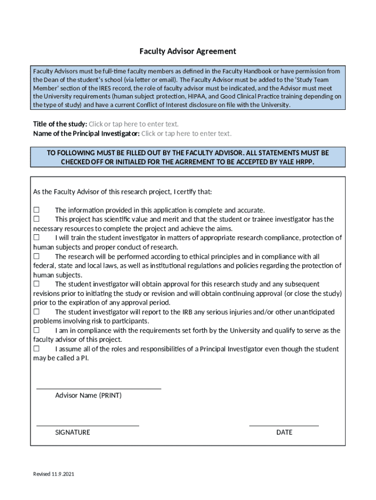 How to fill out Faculty Advisor Agreement