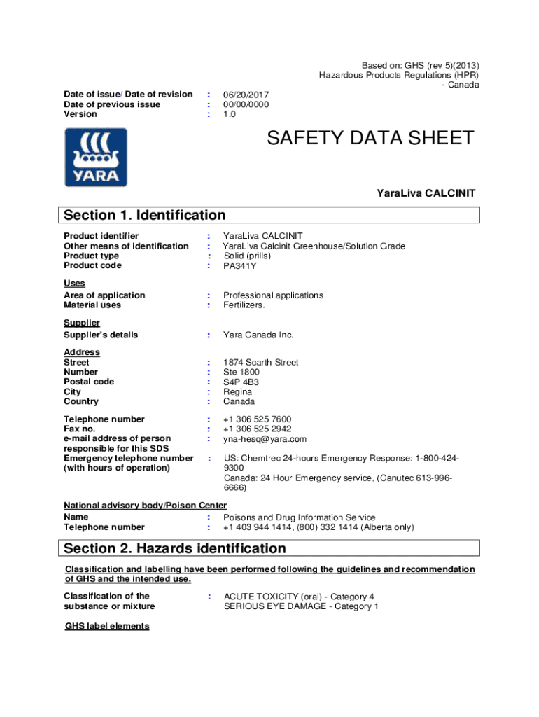 Get the free Safety Data Sheet - Yaraliva Calcinit