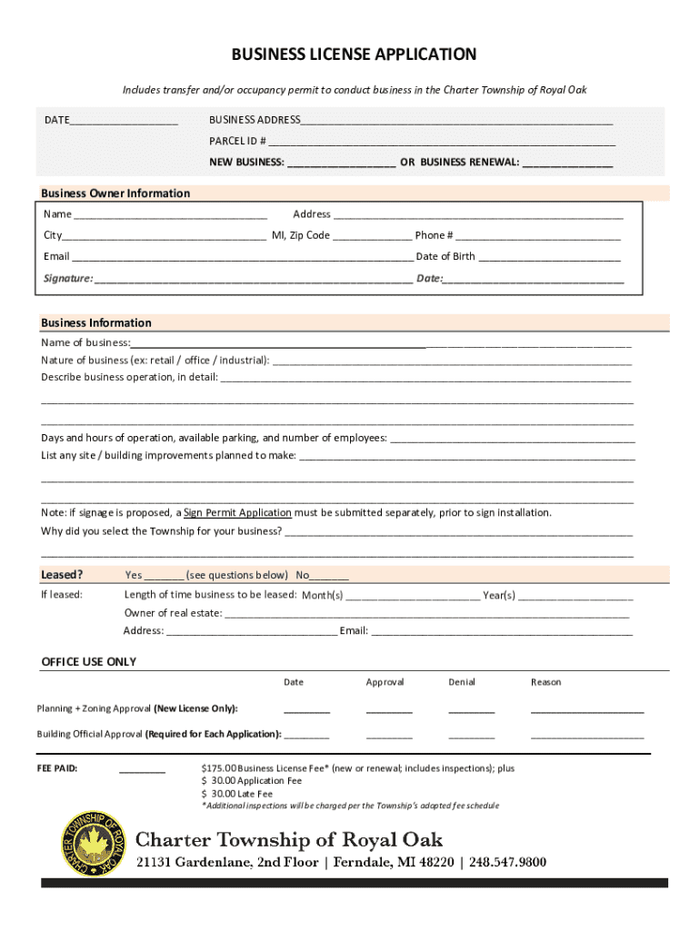 Get the free Business License Application