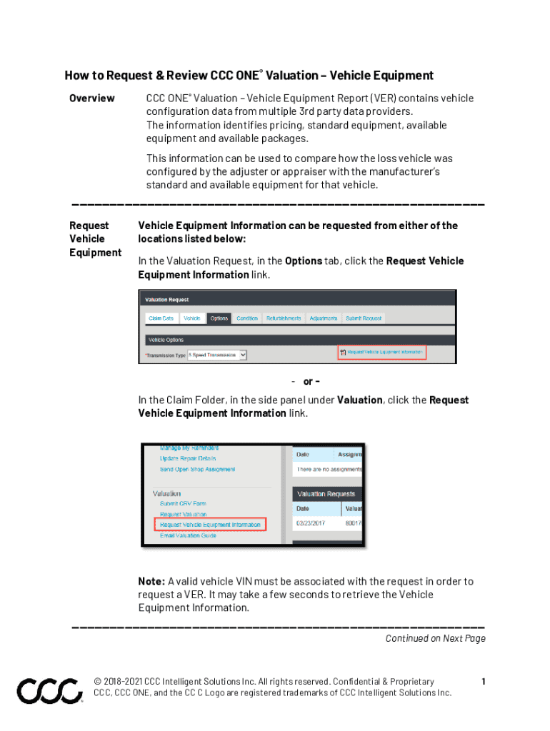 Get the free How to Request & Review Ccc One® Valuation – Vehicle Equipment