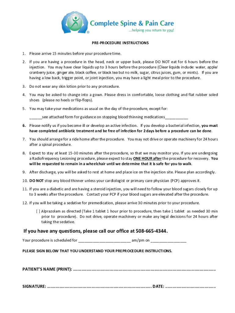 Pre-Procedure Instructions Form: A Comprehensive Guide