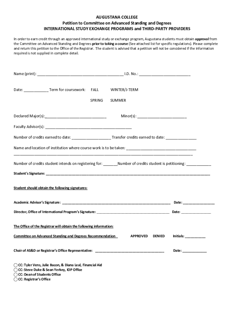 Get the free Petition to Committee on Advanced Standing and Degrees