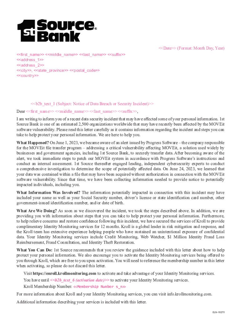 Get the free Notice of Data Breach or Security Incident