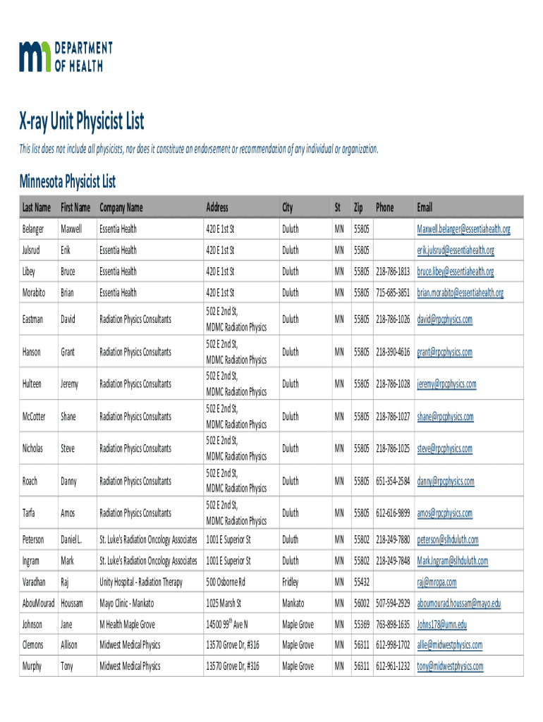 Get the free X-ray Unit Physicist List