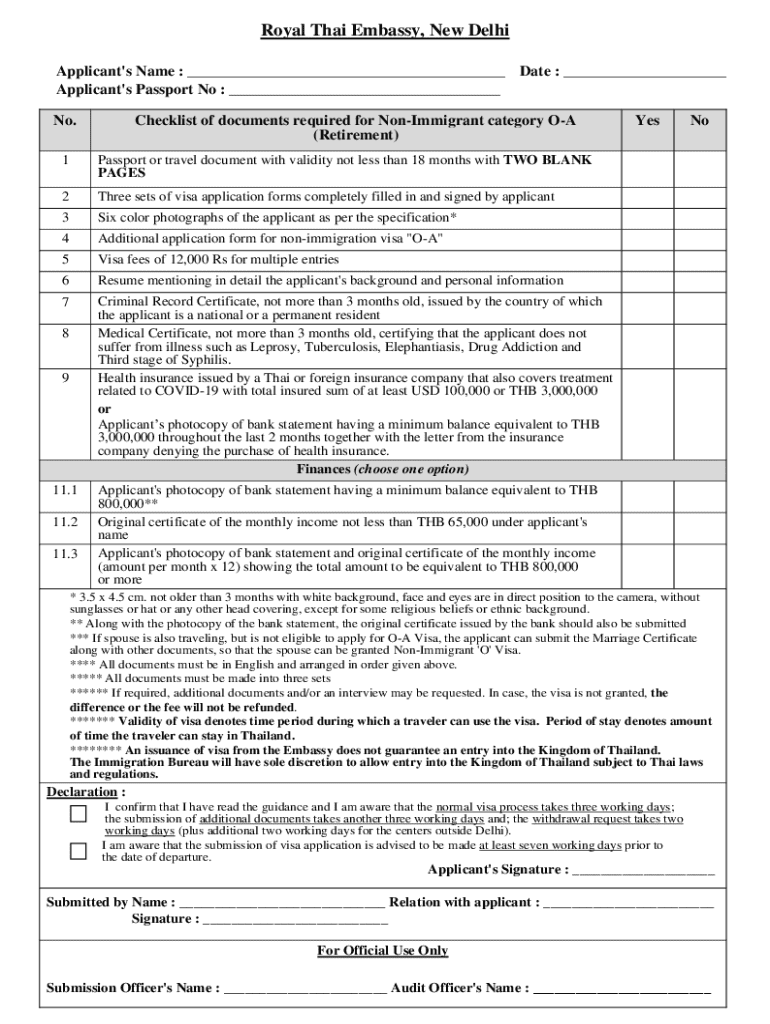 To apply for the O-A visa, applicants must adhere to several key requirements that ensure they meet the eligibility guidelines laid out by the Thai government.