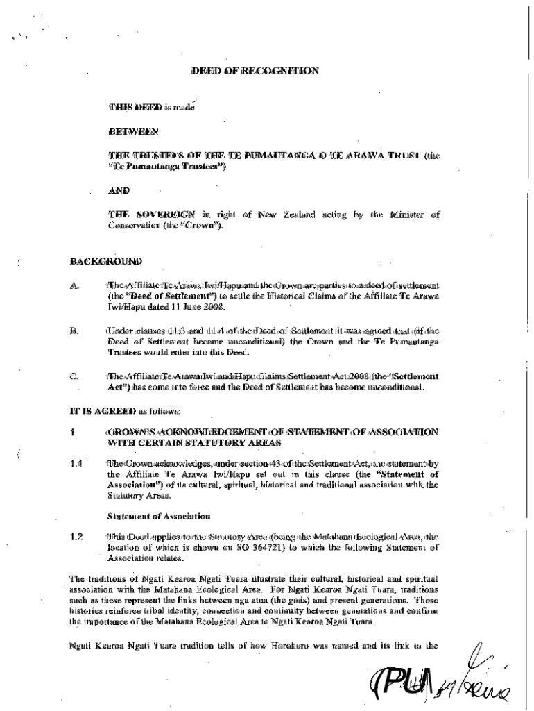 Get the free Deed of Recognition