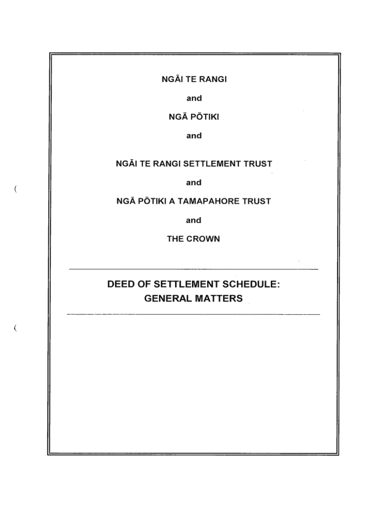 Get the free Ngai Te Rangi and Nga Potiki Deed of Settlement: General Matters Schedule