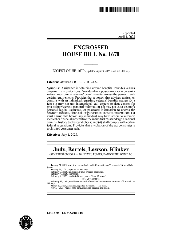 Get the free Engrossed House Bill No. 1670