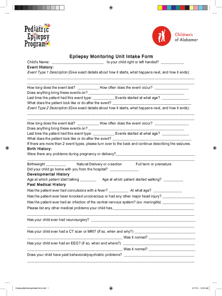 Epilepsy Monitoring Unit Intake Form: A Comprehensive Guide
