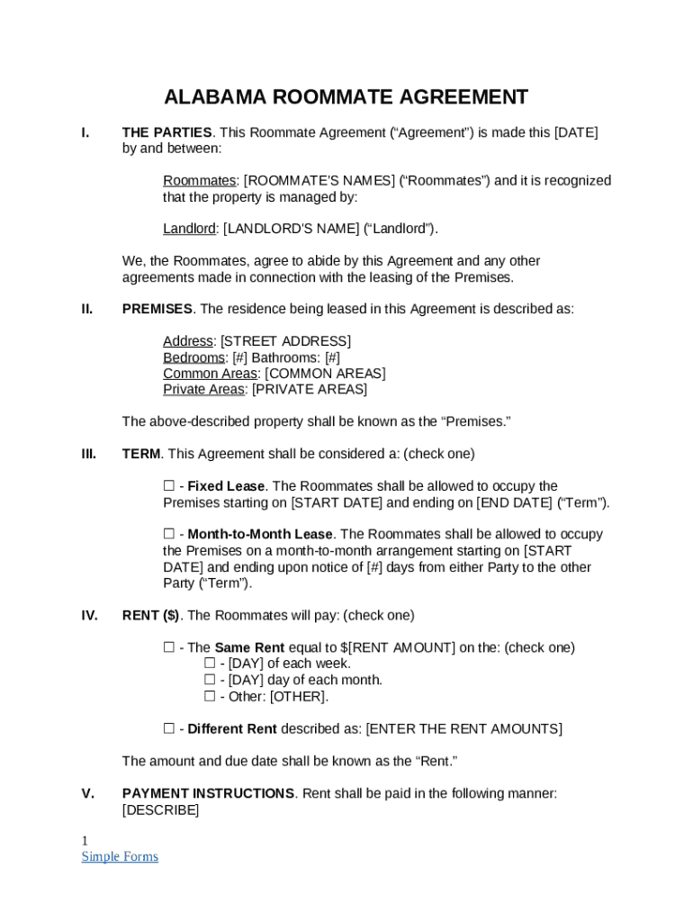 Alabama roommate agreement template form: A comprehensive guide