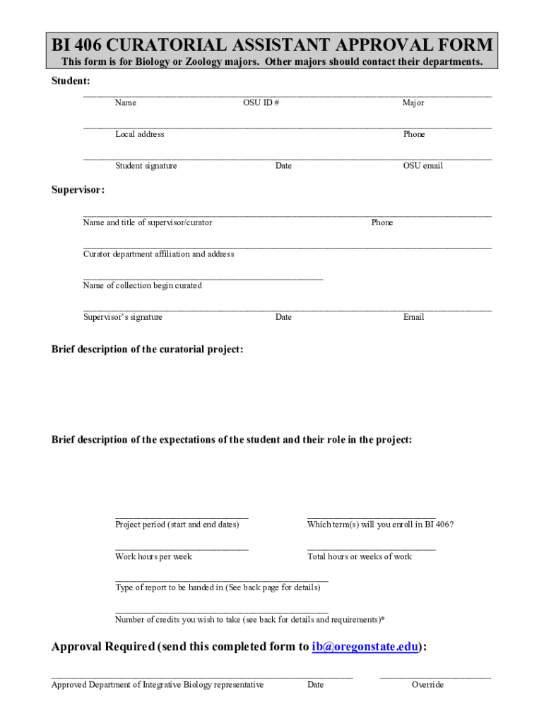 Bi 406 Curatorial Assistant Form: A Comprehensive Guide