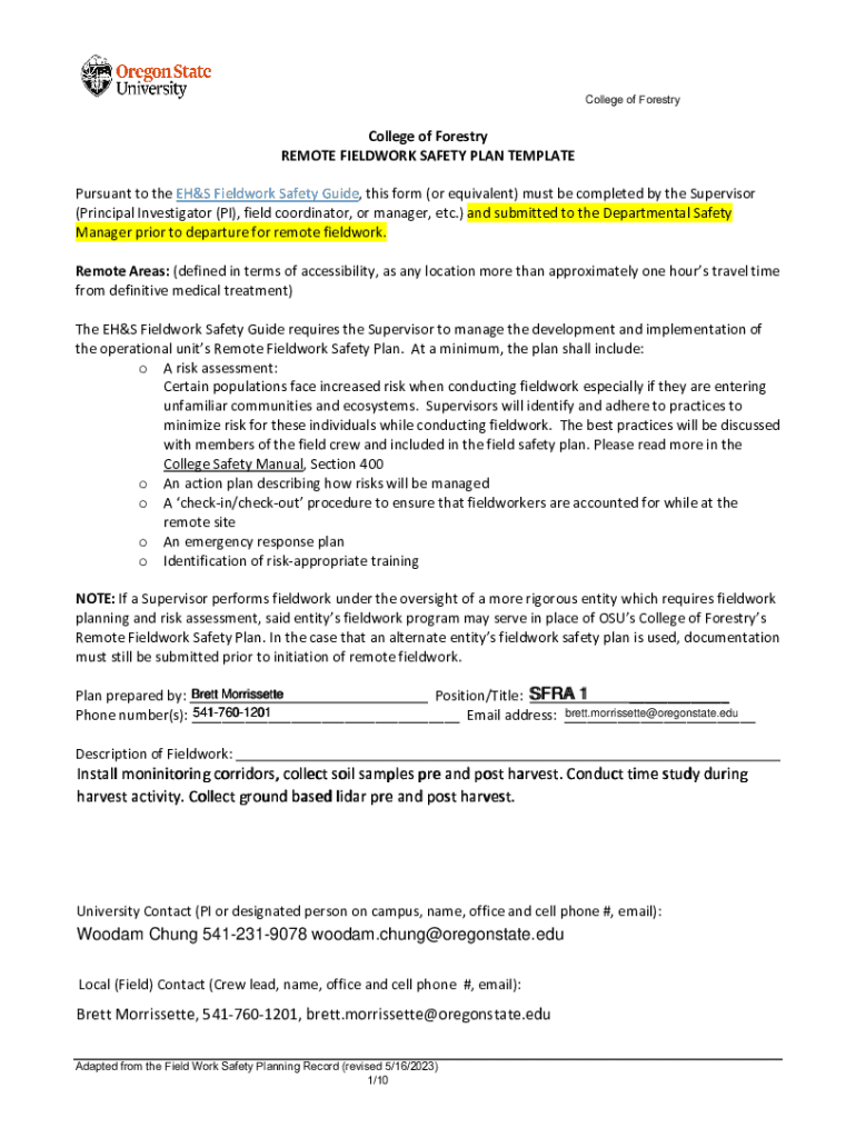 Fill out your remote fieldwork safety plan online with pdfFiller!