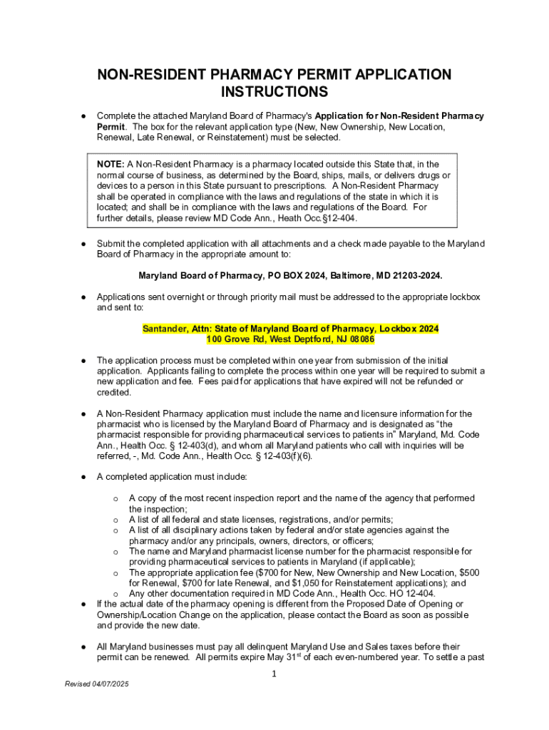 Keeping a non-resident pharmacy permit active requires understanding the renewal process. Typically, permits need to be renewed every one to two years, depending on the regulations set by the state licensing board. Applicants will need to submit renewal applications along with any required documentation to prove ongoing compliance.