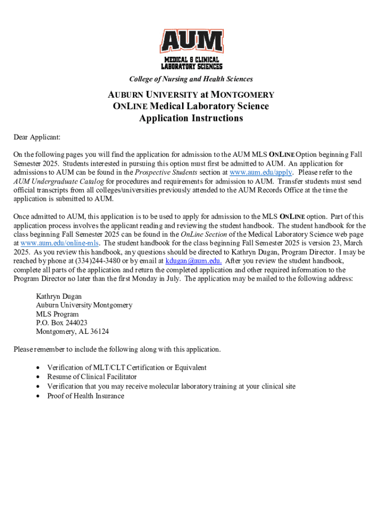 An effective online medical laboratory science form consists of several key components that gather essential information from applicants. The personal information section is fundamental; it typically requires your name, date of birth, and contact information, along with your educational background, which may include previous degrees, coursework, and training.