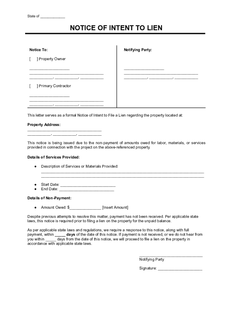 Get the free Notice of Intent to Lien