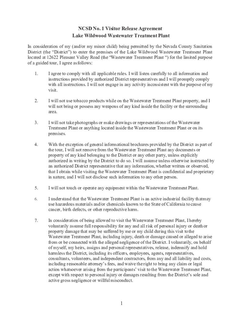 Get the free Ncsd No. 1 Visitor Release Agreement