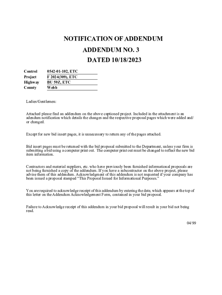 Get the free Notification of Addendum - ftp txdot