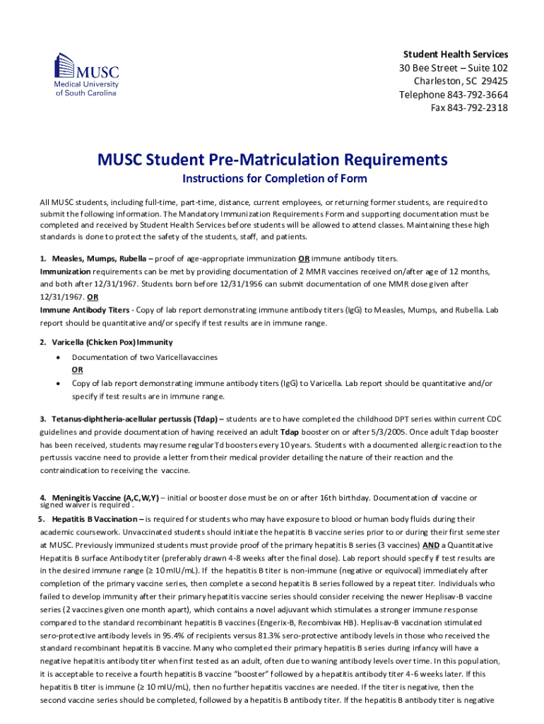 MUSC Student Pre-Matriculation Requirements Form: A Comprehensive Guide