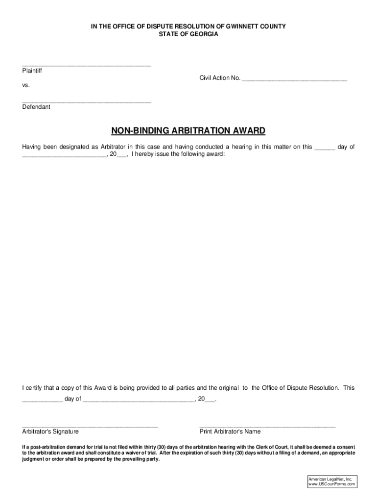 Get the free Non-binding Arbitration Award