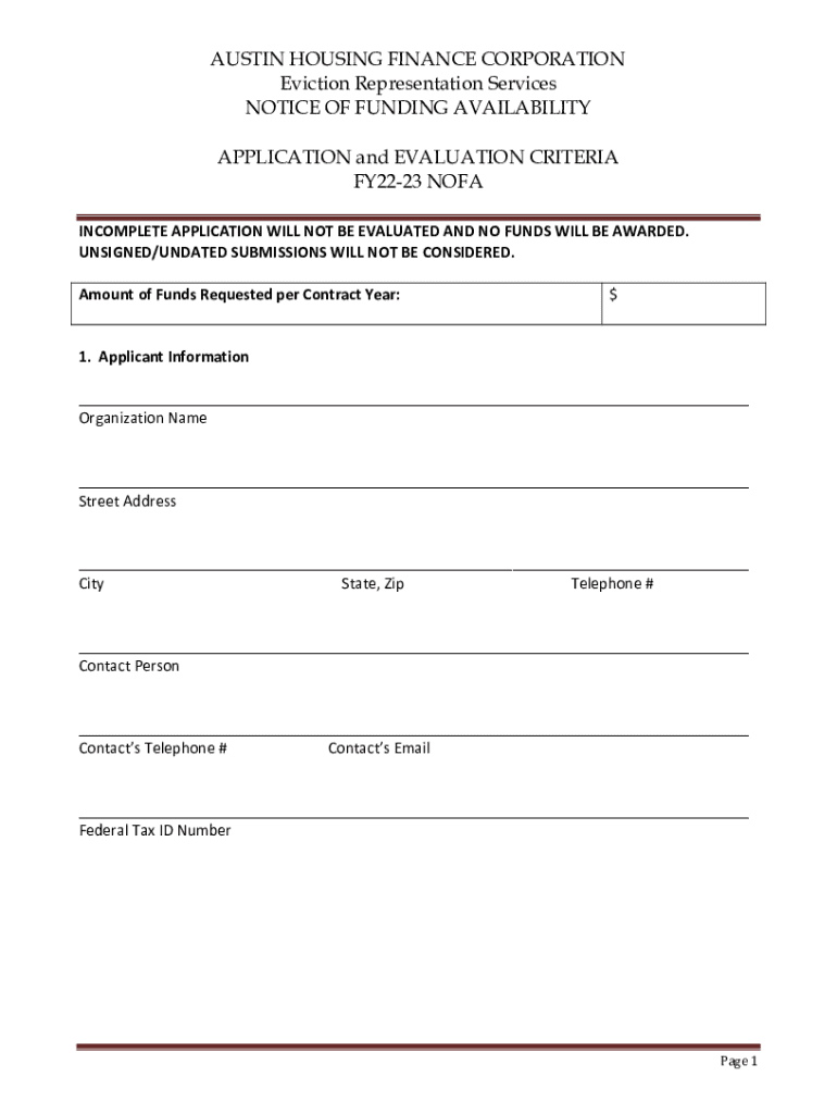 Get the free Notice of Funding Availability