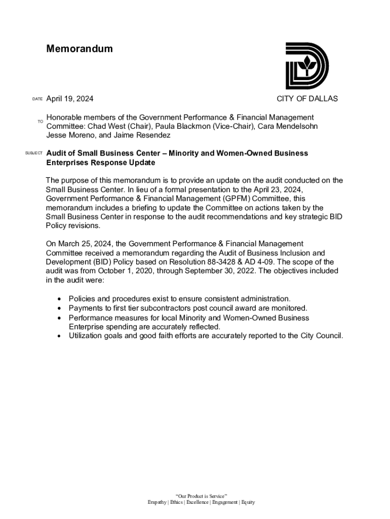 Get the free Audit of Small Business Center - Minority and Women-owned Business Enterprises Respo...