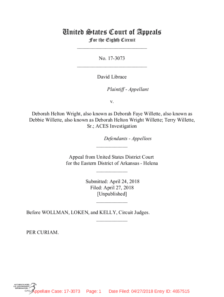Get the free David Librace v. Deborah Wright, et al - Content Details