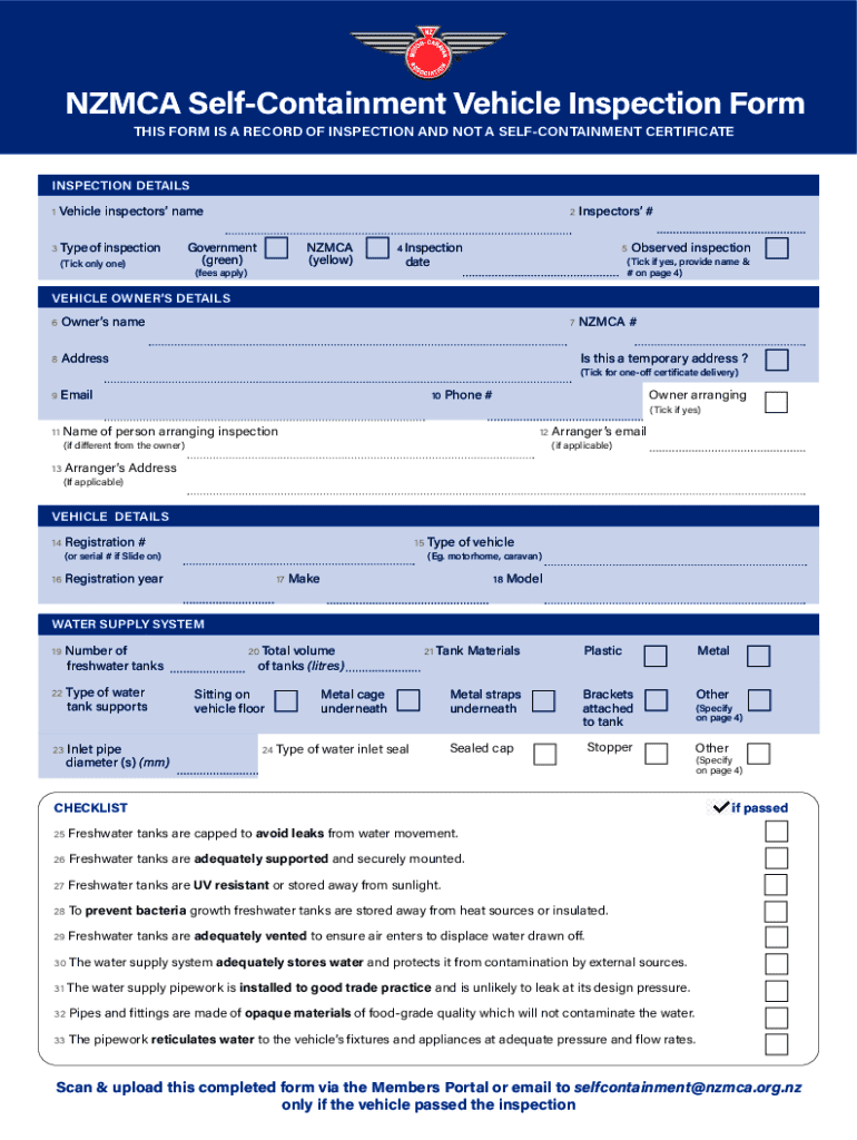 Complete Guide to the NZMCA Self-Containment Vehicle Inspection Form