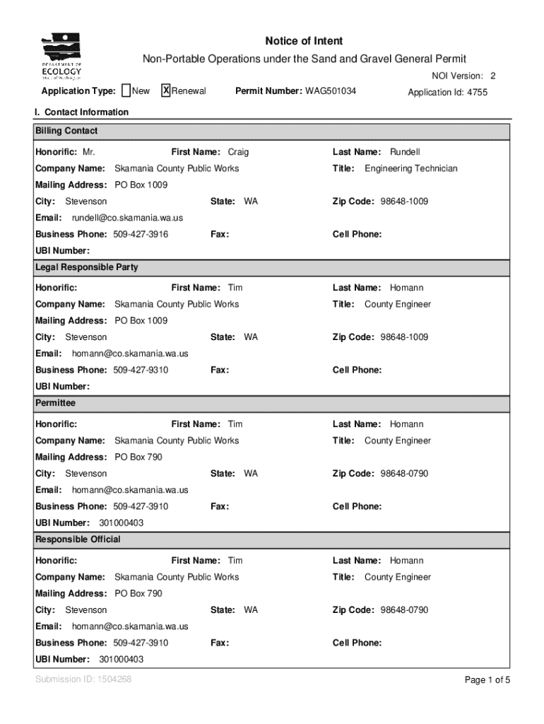 Get the free Notice of Intent Non-portable Operations Under the Sand and Gravel General Permit