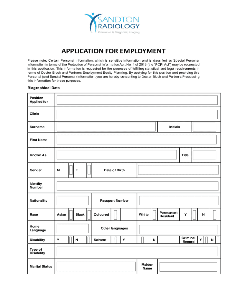 Get the free Application for Employment