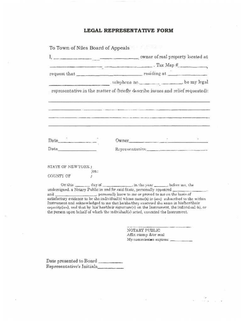 This document authorizes a representative to act on behalf of a property owner in matters related to the Town of Niles Board of Appeals.
