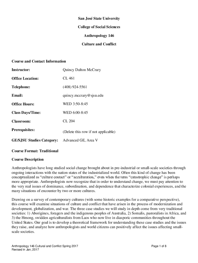 Anthropology 146 offers an in-depth exploration of the relationship between culture and form, providing students with objectives that frame their learning experience. By the end of this course, students are expected to develop critical thinking skills regarding cultural practices, engage with complex social structures, and apply anthropological frameworks to assess contemporary issues.
