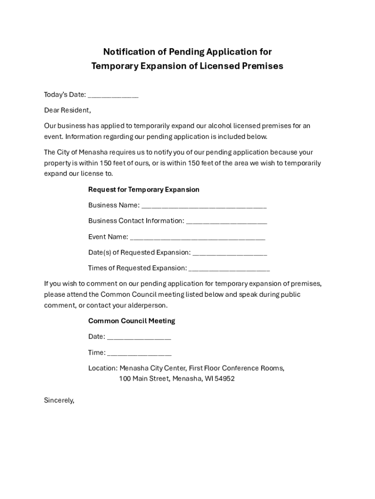 Get the free Notification of Pending Application for Temporary Expansion of Licensed Premises